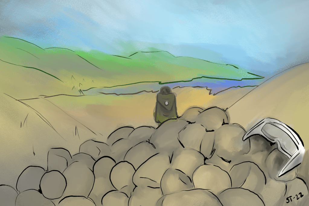 Istuin tunturin rinteellä kaupungin laidalla ja katselin rakennusten tuikkivia valoja. Kuollut, keltainen heinä keinahteli laiskasti tuulessa. Pilvet matelivat taivaanrantaa pitkin ja kietoutuivat toisiinsa kuin valtavat iilimadot. Laskevan auringon säteet pilkahtivat niiden raosta ja värjäsivät horisontin kultaiseksi.